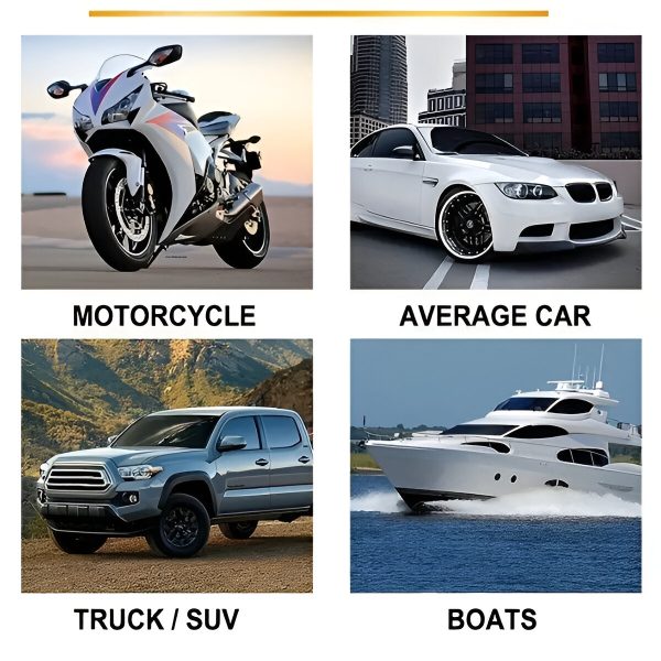 Koristite CARCOAT na automobilima, čamcima, motociklima, kamperima, terenskim vozilima i još mnogo toga. Siguran je za sve površine, uključujući boju, plastiku i staklo.