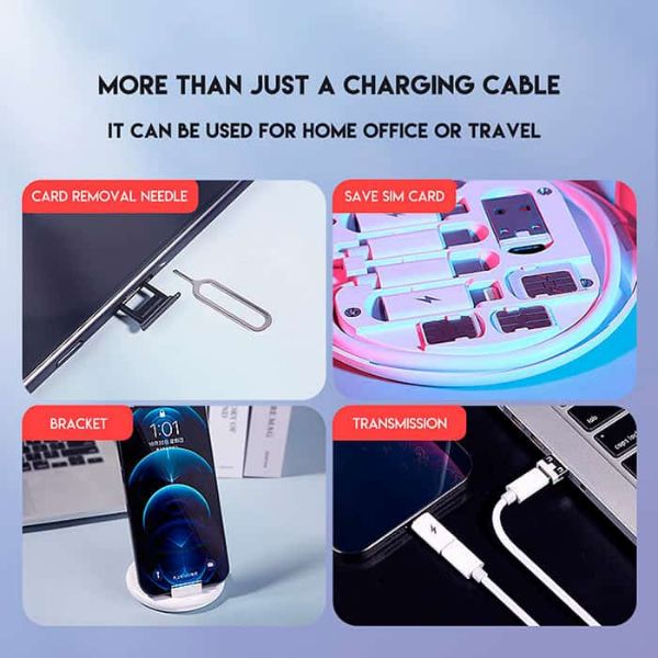 Nema više traženja različitih kablova! TECHUB komplet za punjenje omogućuje vam prebacivanje između USB, USB Type-C, MicroUSB i iPhone priključaka s jednim kablom. Jedan komplet je sve što vam treba za sve vaše pametne uređaje.