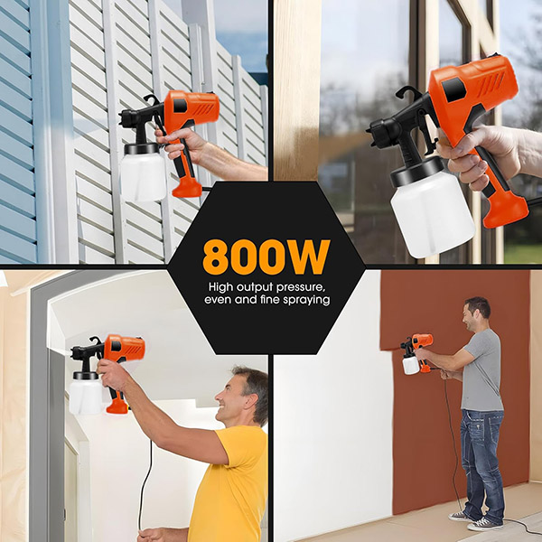Napunite spremnik od 800 ml, zavrnite ga i počnite bojati – priprema traje manje od 60 sekundi. Bez temeljnog premaza, bez razrjeđivanja boje, bez kupnje dodatne opreme. Mlaznica od 2,5 mm osigurava stalan, podesiv protok tako da imate kontrolu od prvog do zadnjeg poteza.