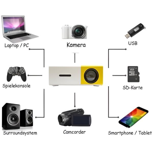 Jednostavno se poveĆŸite s igraÄim konzolama, glazbenim sustavima i viĆĄe. S viĆĄe prikljuÄaka poput USB-a, HDMI-a i AV-a, ovaj projektor osigurava zabavu, bez obzira koji ureÄaj koristite.