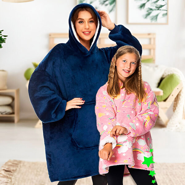 Ne propustite! Nabavite ugodnu deku s kapuljačom i dobijete čarobnu deku s kapuljačom za djecu koja sjaji u mraku potpuno besplatno-savršeno za udobnost cijele obitelji ove zime! Ovo je vremenski ograničena ponuda i dizajnirana je tako da svaki član obitelji bude umotan u toplinu i udobnost. Osigurajte ovu nevjerojatnu ponudu za udobnost obitelji i učinite svaki trenutak ugodnijim!