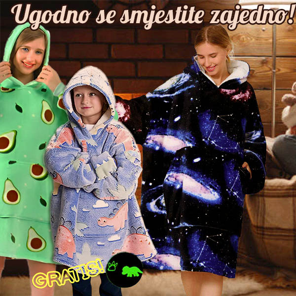 🎁 Kupite udobnu nosivu deku za odrasle HOODZIE i dobit ćete BESPLATNO čarobnu nosivu deku ZA DJECU koja svijetli u mraku KIDHUG! 🎁